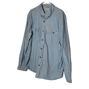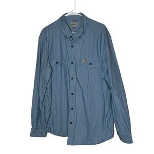 Carhartt Men's Relaxed Fit Casual Button Up Shirt XL Long Sleeve Blue Pocket