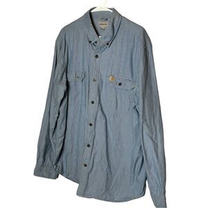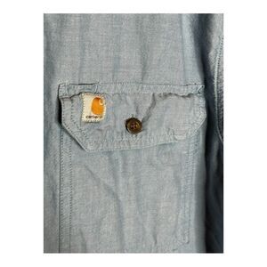 EUC smoke free dog friendly home Carhartt Men's Relaxed Fit Casual Button Up Shirt XL Long Sleeve Blue Pocket workwear redneck blue collar 24” bust and 32” length bb3