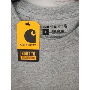 Carhartt shirt, sleeveless tee, gray pocket tee, relaxed fit shirt, heavyweight t-shirt, men's casual wear, durable workwear, cotton blend shirt, comfortable fit tee, large size shirt, branded sleeveless, gray Carhartt top, casual sleeveless top