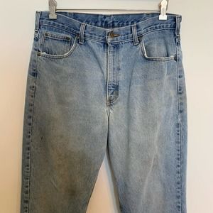 Carhartt Mens Relaxed Fit Jeans Size 36 X 32 Light Wash Work Pants 100% Cotton