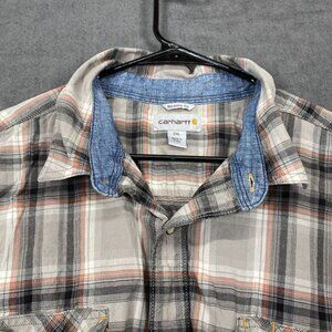 Carhartt Mens Relaxed Fit Plaid Button-Down Shirt 2XL Gray/Orange Cotton Blend
