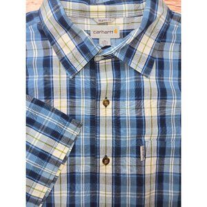 Carhartt Mens Relaxed Fit Short Sleeve Shirt XL - Blue Plaid