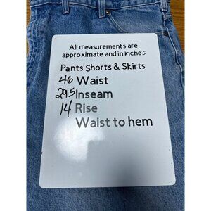 Carhartt Men's Relaxed Fit Straight Leg Jeans Size 46X29 are durable, versatile, and comfortable. Made for everyday wear, they provide ample room and easy movement. There is a small hole starting at the back pocket, some staining, and fraying at hems see photos.