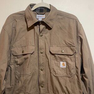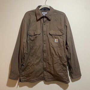 Carhartt Men's Ripstop Solid Shirt Jacket Canyon Brown. Snap button up front. Collared. Several pockets.