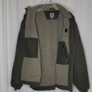Carhartt Mens Sherpa Lined Green Cotton Sandstone Duck Muskegon Jacket - 2XL