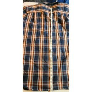 This Carhartt shirt is a perfect addition to your wardrobe. It features a button-down collar and front pocket. The short sleeve plaid shirt comes in size XL and is made of 100% cotton. Navy blue, burnt orange, gray and white colors. The shirt is machine washable. In excellent preloved condition.