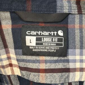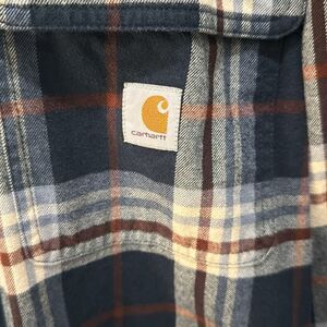 Carhartt Men’s Shirt Jacket Button Loose Fit Flannel Sherpa Plaid Blue Large