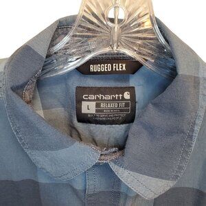 Carhartt Mens Shirt Size L Relaxed Fit Rugged Flex Blue Gray Plaid Utility Work