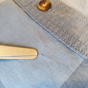 Features: Button up with sewn in extra button (in photo). Rugged Flex. Relaxed Fit.