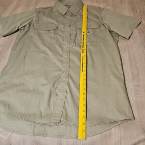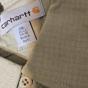 Carhartt Mens Size 2xl Long Khaki Ripstop Button Up Shirt Short Sleeve Vent ###