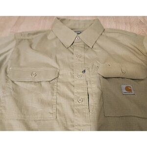 Carhartt Mens Size 2xl Long Khaki Ripstop Button Up Shirt Short Sleeve Vented
