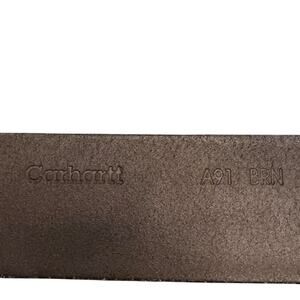This Carhartt leather belt is a stylish and durable accessory for any man. Made from high-quality brown leather, it features a solid brass buckle that adds a touch of sophistication. The size 52 ensures a comfortable fit.