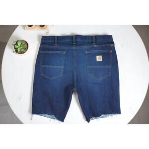 Carhartt shorts, men’s jean shorts, straight fit shorts, raw hem denim, cutoff denim shorts, Carhartt 38x32, streetwear shorts, workwear fashion, dark wash shorts, summer denim, rugged men’s shorts, made in Colombia, durable denim shorts, carpenter-inspired shorts