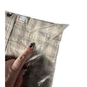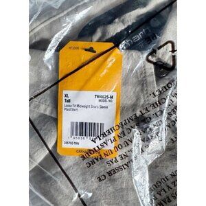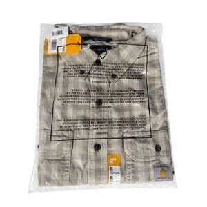 Carhartt men's tall loose fit short sleeve button up shirt. Shirt is done in a tan plaid. It's made of 100% cotton and is a man's size XL Tall Loose Fit. Shirt is brand new in package never opened. If you’d like me to open it to get exact measurements I will.