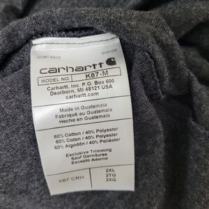 Introducing the Carhartt Men's T Gray Loose Fit Cotton/Poly Blended Short Sleeve Pocket Tee, a classic addition to any wardrobe. This shirt features a solid pattern, crew neck, and short sleeves, making it a versatile option for any season. The fabric is a knit blend of polyester, cotton, and cotton blend, ensuring breathability and moisture-wicking properties. The shirt also includes pockets for convenience and a relaxed fit for comfort. The Carhartt logo accents the shirt, adding a touch of style to this classic tee.