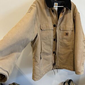 Carhartt Men's XL Tan Winter Jacket Coat Heavy Quilted Lined Full Zip EUC Read
