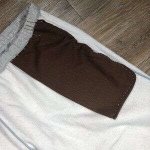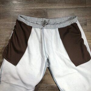 Classic relaxed fit/baggy sweatpants with drawstring closure. Side seams have been cut and front pockets have been hand sewn into pants. See photos.
