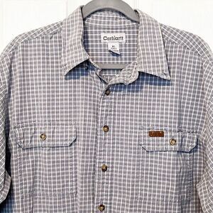 Carhartt Mens Short Sleeve Plaid Button Down Shirt Size XL Tall