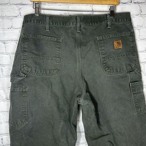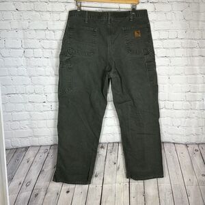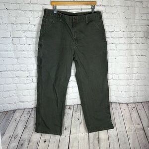 Carhartt Men’s Washed Duck Green Moss Dungaree fit Pants W38 x L30 B11 Workwear Canvas Cargo Utility
