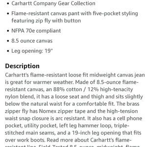 Carhartt NWT Flame Resistant Loose Fit Canvas Workwear Navy Pants Size 40x30. Highest Quality, Company Gear Collection, NFPA 70e Compliant, Retail $100