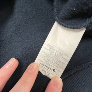 Carhartt Navy Blue Mens XL Fleece Crew Neck Kangaroo K186 472 Work Sweatshirt. Pre-owned condition. Please note that the item has fading present solid navy blue colorway mini force logo front long sleeve fleece cotton poly made in Mexico ribbed cuffs and hem classic streetwear workwear sporty basics rugged utility outdoorsman workwear workwear utility