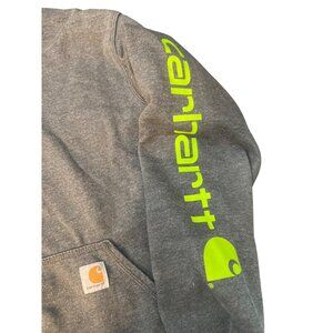 Carhartt Original Fit Gray Hooded Sweatshirt Hoodie Arm Spellout Pocket Size S