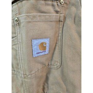 Carhartt bib overalls, size 34x34 with the double knee. Brown in color. They are in good used condition, some stains and a bit of wear on the bottom hems but no rips or tears. Please see pictures for condition details.