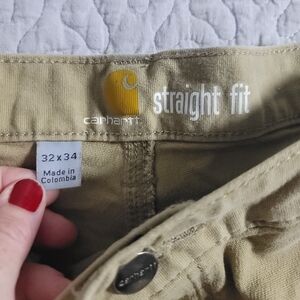 Carhartt Pants Mens 32x34 Khaki Tan Straight Fit Workwear Grunge.