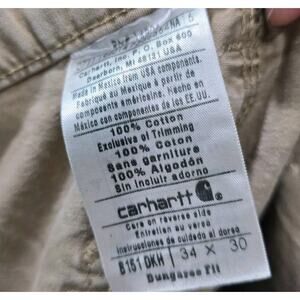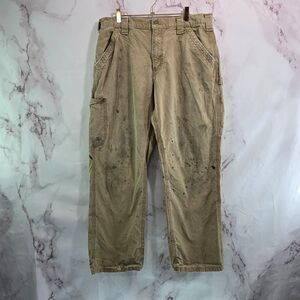 Carhartt Pants Mens 34 X 30 Khaki Tan Canvas Straight Dugaree Fit Destroyed