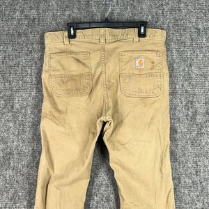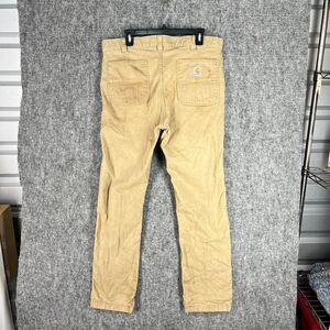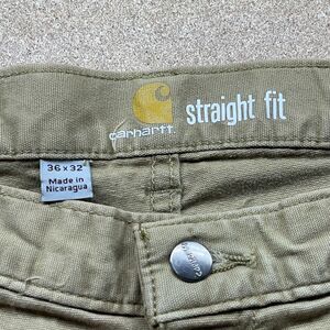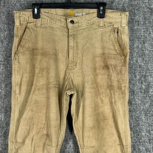 Carhartt Pants Mens 36 Chino Canvas Workwear Construction Tan Stretch Distressed