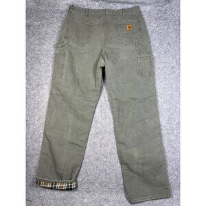Carhartt Pants Mens 38x36 Green Flannel Lined Workwear B111 MOS Olive