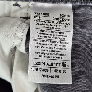 Carhartt Pants Mens 42x30 Gray Rugged Flex Canvas Relaxed Fit 102517-039