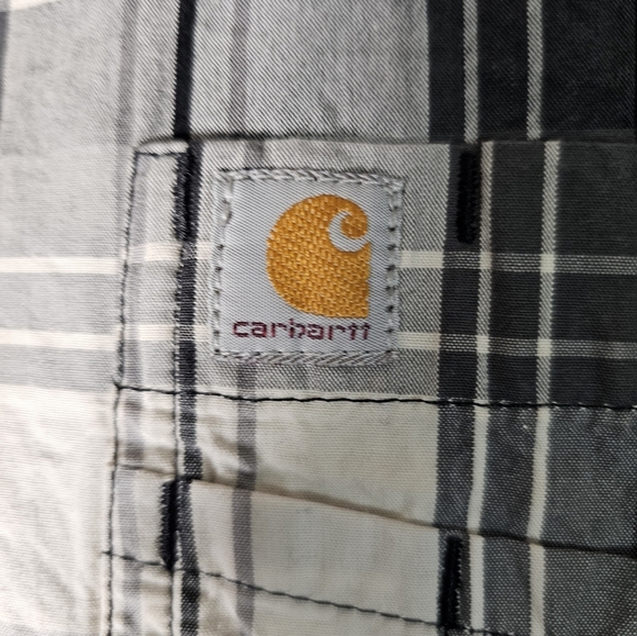 Carhartt Plaid Button Up 100% Cotton Shirt Single Breast Pocket Size XL Tall