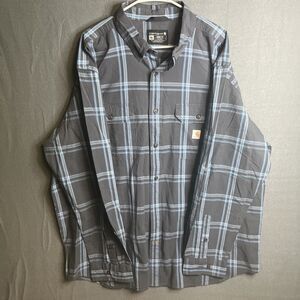 Carhartt Plaid Loose Fit Button Down Blue Workwear Long Sleeve Outdoors 2XL