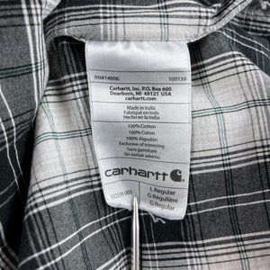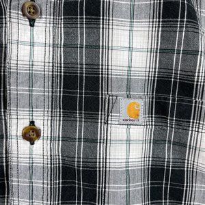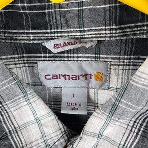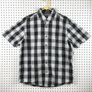 Carhartt Plaid Short Sleeve Button Down Shirt Men's L Black White Relaxed Fit