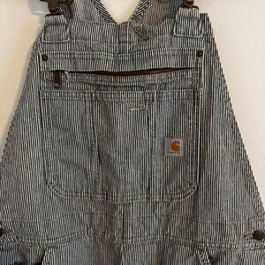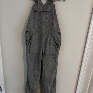 Carhartt Railroad Stripe Denim Bib Overall Womens Medium