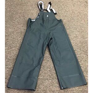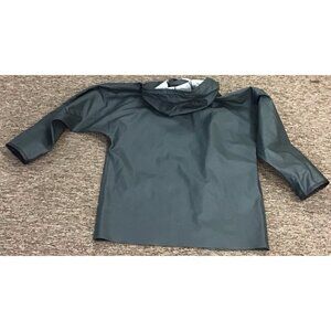 The Carhartt Rain Coat Mens S Green PVC Waterproof Surrey Hooded Jacket and Bibs is a durable and reliable outerwear option for men in need of protection from the elements. Made with a solid green PVC fabric, this long-length coat features multiple closures including zips, buttons, drawstrings, and snaps for secure fit. The removable hood adds versatility, while the 0.55 mm polyester-backed PVC lining provides insulation and waterproofing. Perfect for workwear or outdoor activities like walking, hunting, fishing, or hiking, this Carhartt jacket is designed for all seasons and includes convenient pockets for storing essentials. The classic design and reliable brand make this coat a practical choice for any weather condition. Gently loved lots of life left. 💚