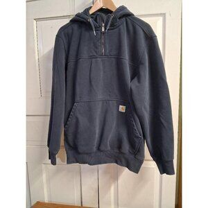 Carhartt Rain Defender Loose Fit Half-Zip Hoodie Mens M Navy Blue Durable Warm