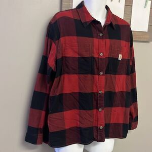 Carhartt Red Black Checkered Rugged Flex Loose Fit Button Down Flannel Shirt- 2X
