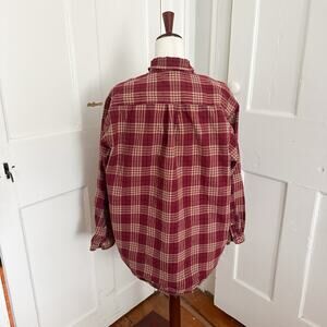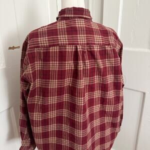 Great condition burgundy/maroon red, tan, and black tartan checkered collared plaid flannel from Carhartt. Worn a few times with plenty of life left. Super soft and comfortable! Only sign of wear is on the front pocket tag (pictured).