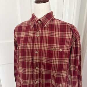 Carhartt Red & Tan Plaid Flannel Shirt Men's L 100% Cotton