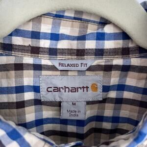 Carhartt Relaxed Fit Blue Plaid Button Down Collared Shirt Men's Medium