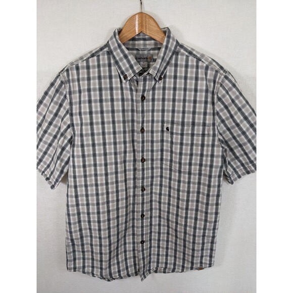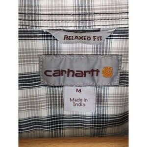 Carhartt Relaxed Fit Button Up Shirt Men's Medium Blue/Gray Plaid Short Sleeve