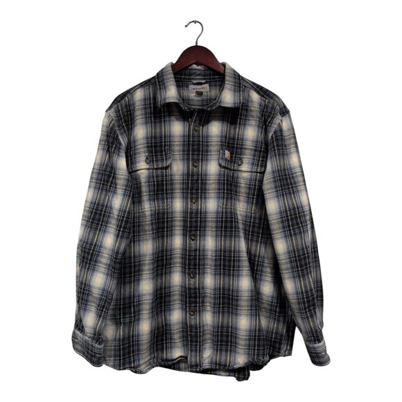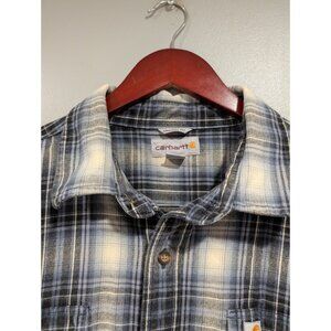 Carhartt Relaxed Fit Flannel Shirt Mens L Plaid Casual Button Down Pocket Blue