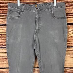Carhartt Relaxed Fit Gray Denim Work Jeans in 8/10 condition due to light fade, no major flaws. Men's size 38x32, 19.5 inches across the waist, 43 inches is the length, 31.5 inches is the inseam. Always willing to do lower pricing on bundle deals.