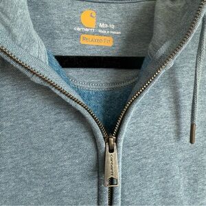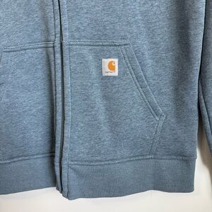 Carhartt women’s sweatshirt with hoodie,relaxed fit, full zipper closure, mid-weight fabric, cotton blend, fleece lined. Very good preowned condition gently used no flaws.