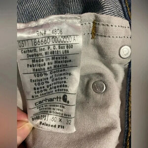 Carhartt Relaxed Fit Jeans. Medium wash. Size 50x32. Small stain on pant leg (see pic), otherwise good condition.
