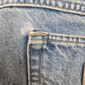 This is a pre-owned item that may show signs of wear. In good condition, light fraying at back pockets.