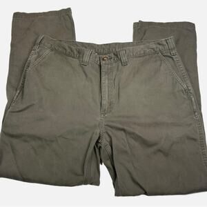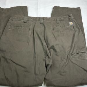 Item in Good Preowned Condition. Mens Relaxed Fit, 100% cotton, 6 pocket design, Brown, some wear, SEE PHOTOS. Measurements Taken Laying Flat: