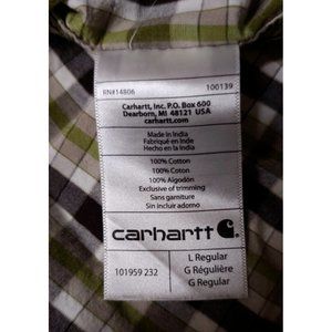 Carhartt Relaxed Fit Mens Large Green Brown Plaid Short Sleeve Button Work Shirt